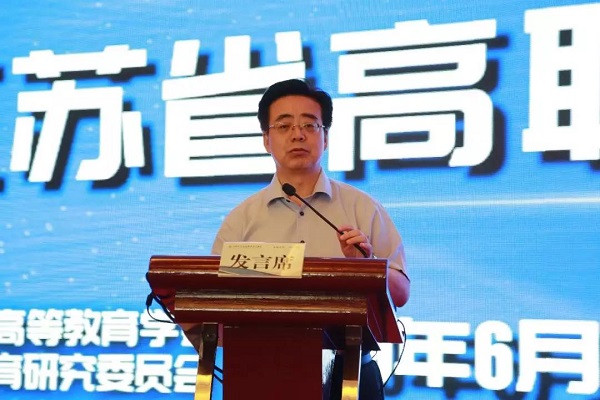 江苏省高等教育学会高职教育研究委员会理事长、江苏经贸职业技术学院校长薛茂云主持会议