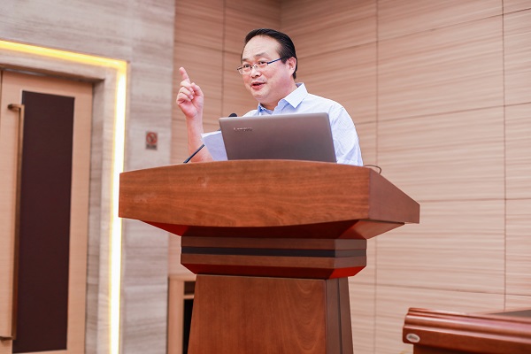 袁洪志主任在培训会上作了题为《依据文件 聚焦体系 关注运行 引导方向——高职<复核工作指引>起草说明》的专题报告。袁主任首先回顾了诊改制度建设的背景和相关文件,深化对诊改工作方针和内涵的认识,结合全国院校诊改实践指出对诊改制度的认识偏差。其次,袁主任解读了“55821”的架构理念,即“五纵五横”结构、“8字形”运行单元、“双引擎”入住动力、“一平台”技术支撑。最后,袁主任指出了以服务需求和提升质量为导向的诊改方案完善路径,介绍了《复核指引》在全国高职院校复核工作中的使用、修改和完善情况等。