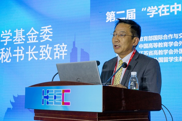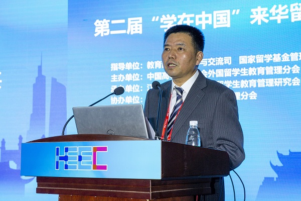 11月1日下午,第二届“学在中国”来华留学博士生论坛在南京博览中心顺利举行。本次论坛由中国高等教育学会外国留学生教育管理分会主办,江苏省高教学会外国留学生教育管理研究会和河海大学承办,是2019年秋季中国高等教育博览会的重要组成部分。论坛汇聚来自全国高校的优秀博士留学生代表,围绕“学在中国”这一主题展示学业成果、分享学习心得。中国高等教育学会监事长孙维杰、中国高等教育学会外国留学生教育管理分会理事长刘京辉、国家留学基金委副秘书长王胜刚和江苏省教育厅副厅长洪流出席开幕式,开幕式由中国高等教育学会外国留学生教育管理分会副理事长兼秘书长李建民主持。