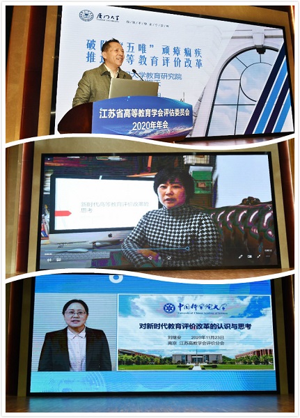 江苏省高教学会会长丁晓昌在发言中指出,建立完善高等教育评价改革体系、推动和实现高等教育高质量发展,是十九届五中全会明确提出的“建设高质量教育体系”的政策导向和重点要求,高校办学第一原则应坚持立德树人是根本任务和根本标准、办学评价应坚持人才培养质量的第一指标、教师评价的破立并举应坚持师德师风的第一标准,要围绕这三个第一、结合江苏实践,以中共中央、国务院印发的《深化新时代教育评价改革总体方案》为纲领性文件,谋划和探寻破解高等教育评价改革难题,推动我省高等教育内涵发展,加快推进我省高等教育现代化建设。