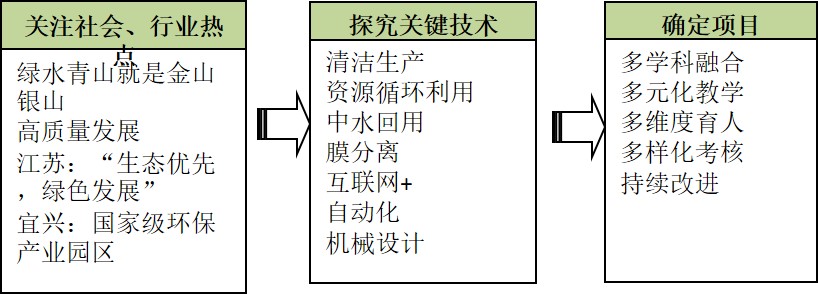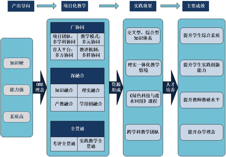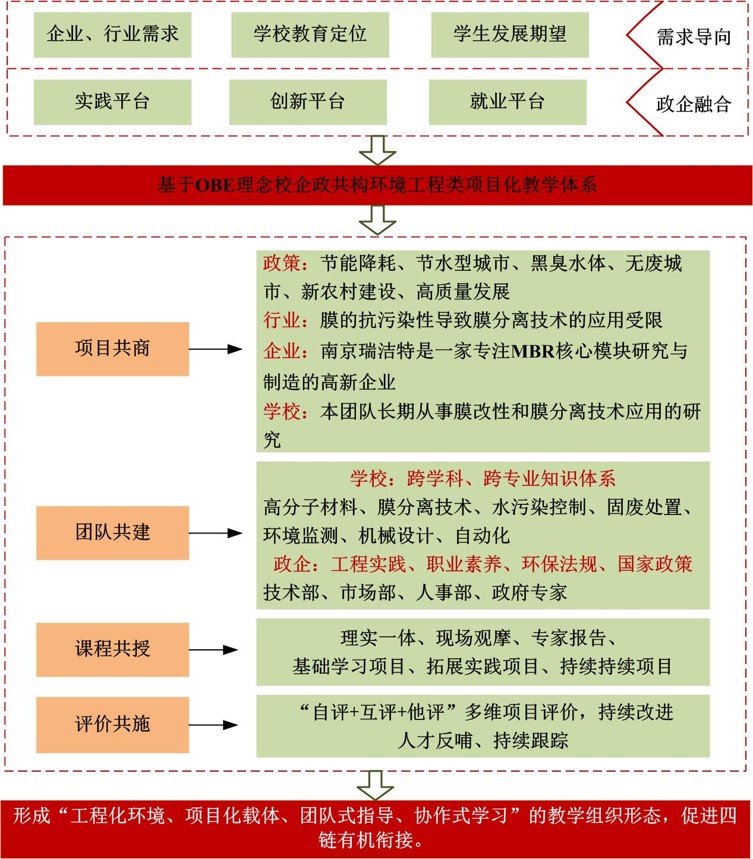 本课题基于成果导向教育(Outcome Based Education,OBE)理念,结合21世纪的环境工程专业应用型人才须具备解决“复杂工程问题”毕业要求所达成职业能力的需要,本着立足地方、面向行业、依托政企、服务区域的原则,构建并实践“校企政深度融合的环境工程类项目化教学”。