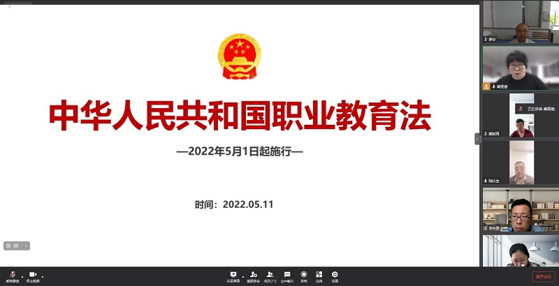 近期,新修订的《中华人民共和国职业教育法》(以下简称“新职业教育法”)正式颁布并于2022年5月1日起施行。今年职业教育活动周是法律颁布实施后的第一个活动周,深入学习宣传新职业教育法是本次活动周的重要内容。5月11日,信息技术学院面向全体教职工举办了一场线上宣讲会,副院长戴雯惠就新职业教育法的核心内容进行了简要概述,从修订背景、目的意义、原则精神、章节结构、内涵特征、贯彻实施等方面进行了深入的讲解。信息技术学院党总支书记陆庆生作总结讲话。新职业教育法通过顶层设计从法律层面为职业教育拓展了更加良好的发展空间,与会教职工纷纷表示将乘这次新职业教育法出台的东风,继续担当作为,以求实的工作精神、务实的工作态度、扎实的工作作风,助力学院高质量发展,成就学生的智慧人生。