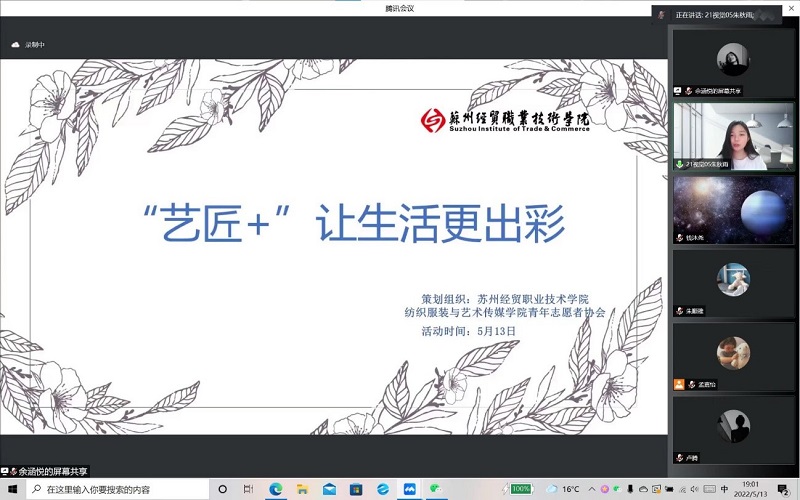 技能服务走进社区,即是展示学子技能的平台,也是民众了解职业教育、尊重职业教育、认可职业教育的窗口。职教活动周期间,由纺织服装与艺术传媒学院环境艺术设计、服装与服饰设计和数字媒体艺术设计等专业的学生组成的“艺匠+”青年志愿者协会组织了主题为“‘艺匠+’让生活更出彩”的服务活动。志愿服务团队的学生发挥自己的专业特长,以线上教学的方式,为乡村儿童详细讲解文创产品的制作过程,介绍了缂丝起源、发展及生产技艺,并手把手教孩子们制作手工画。屏幕前一张张稚嫩的面孔、因新奇而挥动的小手、充满童真的图画,让志愿服务团队的学生感受到技能带来的自信心和社会责任感。学生志愿者们扎实的专业技术、耐心细致的讲述,赢得了社区居民的高度赞扬和一致好评。