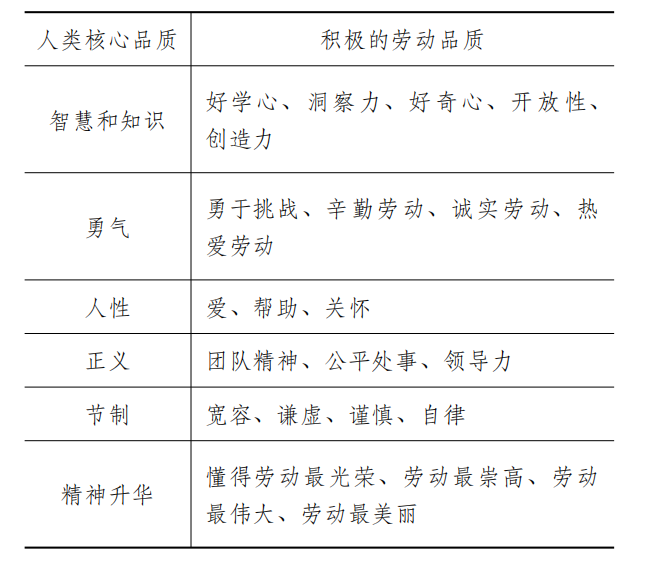 表1 积极心理学的核心品质与劳动品质培养内容对应表