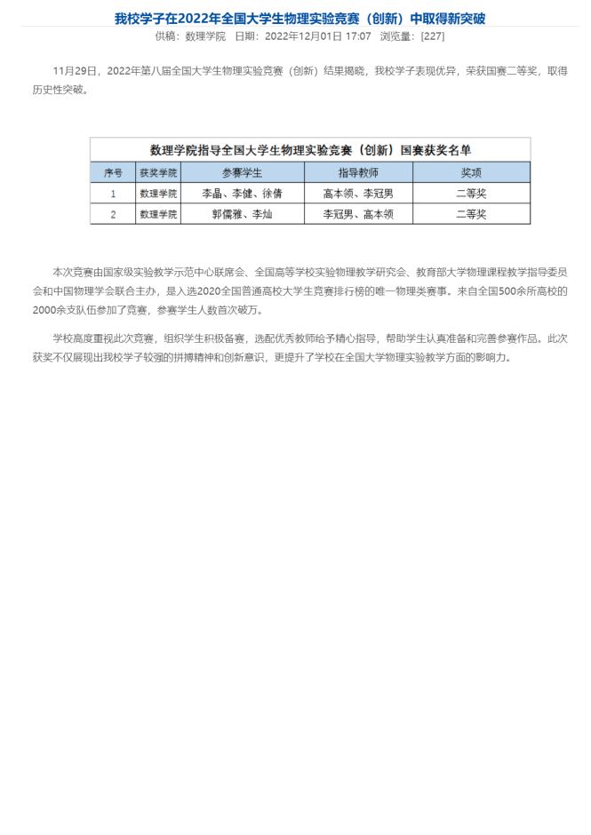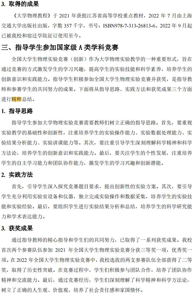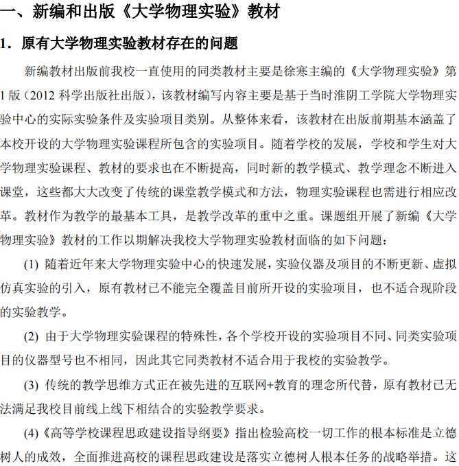 淮阴工学院李冠男/范媛媛 主持完成了2020年江苏高校“大学素质教育与数字化课程建设”专项课题“大学物理实验与思想政治教育融合研究”(课题编号:2020JDKT047),课题组主要成员:周在进、唐亚陆、林毅、高本领。