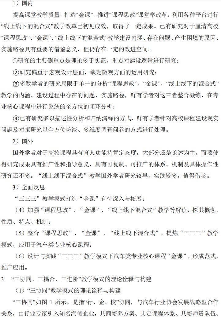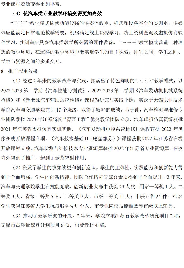 无锡职业技术学院游专 主持完成了2021年江苏高校“教学研究工作”专项课题“汽车类专业核心课程“三三三”模式“金课”建设与实践”(课题编号:2021JSJY035),课题组主要成员:陈珣、魏婕、张国芬、张忠帆、沈伟、李萌、丁鹏、崔宏飞。
