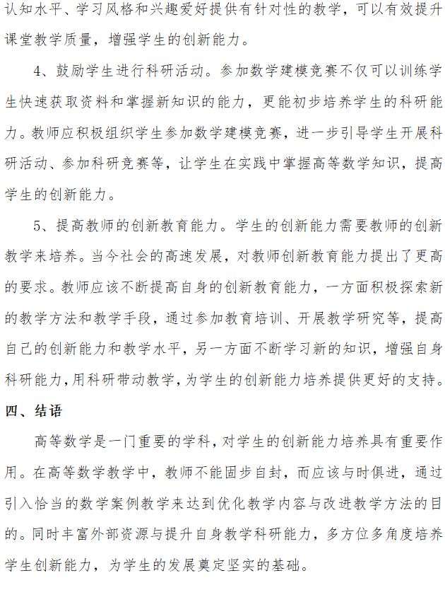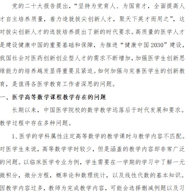 江苏省高等学校教学管理研究会教材管理工作委员会(南京医科大学)吴静、陈慧 主持完成了2022年江苏省高校“高质量公共课教学改革研究”专项课题"基于数学案例教学培养医学生创新思维能力”(课题编号:2022JDKT057),课题组主要成员:蔡奇慧、谢宗真、夏伟。