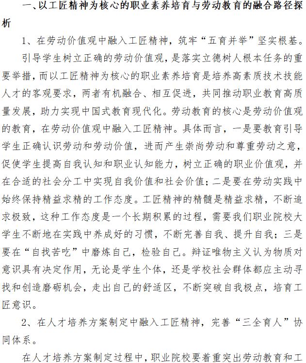 劳动教育视角下高职院校学生工匠精神培育路径研究