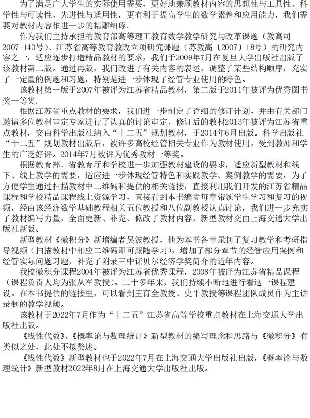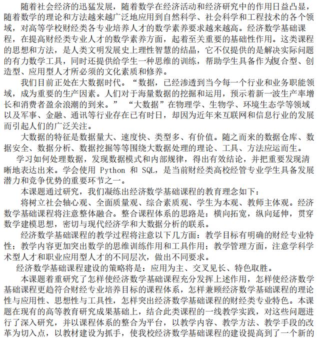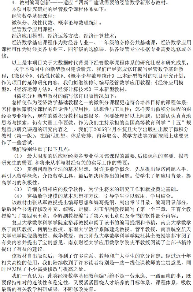 南京财经大学张从军 主持完成了2021年江苏省高校“大学生劳动教育”“基础课课程群”专项课题“大数据时代背景下经管数学课程体系和新型教材建设研究”(课题编号:2021JDKT063),课题组主要成员:吴波、王育全、宋瑞丽、时洪波、周惠新、黄顺林、谭玉顺、王月虎。