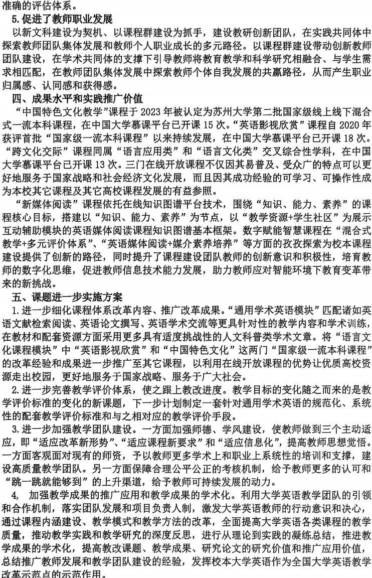 苏州大学张卓、丁咪咪主持完成了2022年江苏高校外语教育“高质量发展背景下外语教学改革”专项研究课题“新文科背景下大学英语教学创新团队建设”(课题编号:2022WYZD013),课题组主要成员:汤丽娜、张晔、夏天、丁红云